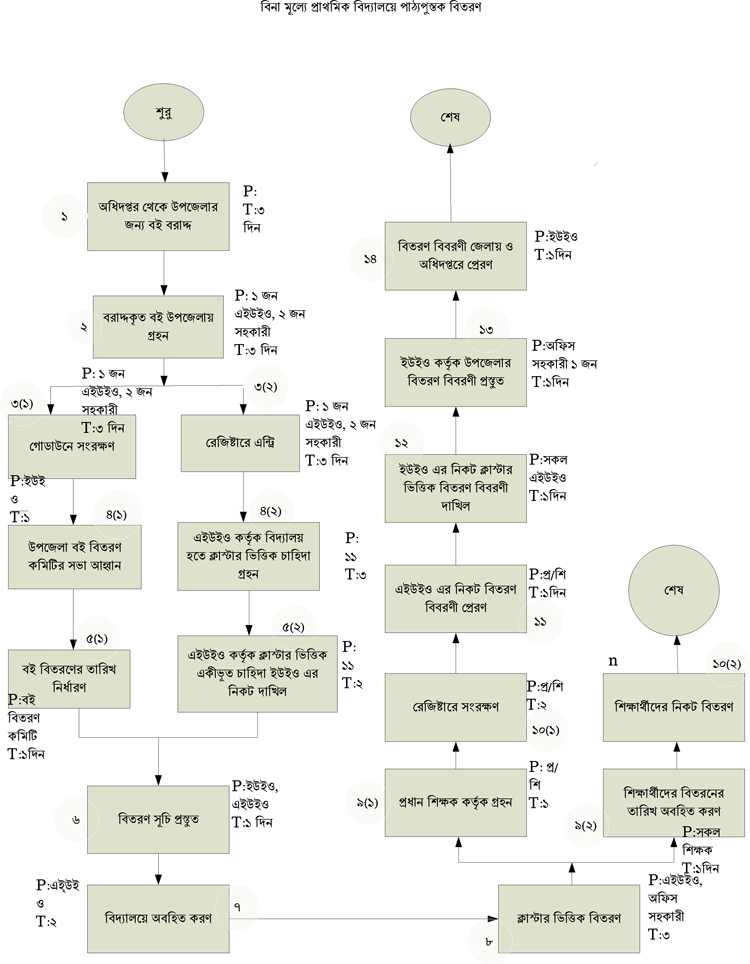 বিনামূল্য প্রাথমিক বিদ্যালয়ে পুস্তক বিতরণের প্রসেস ম্যাপ